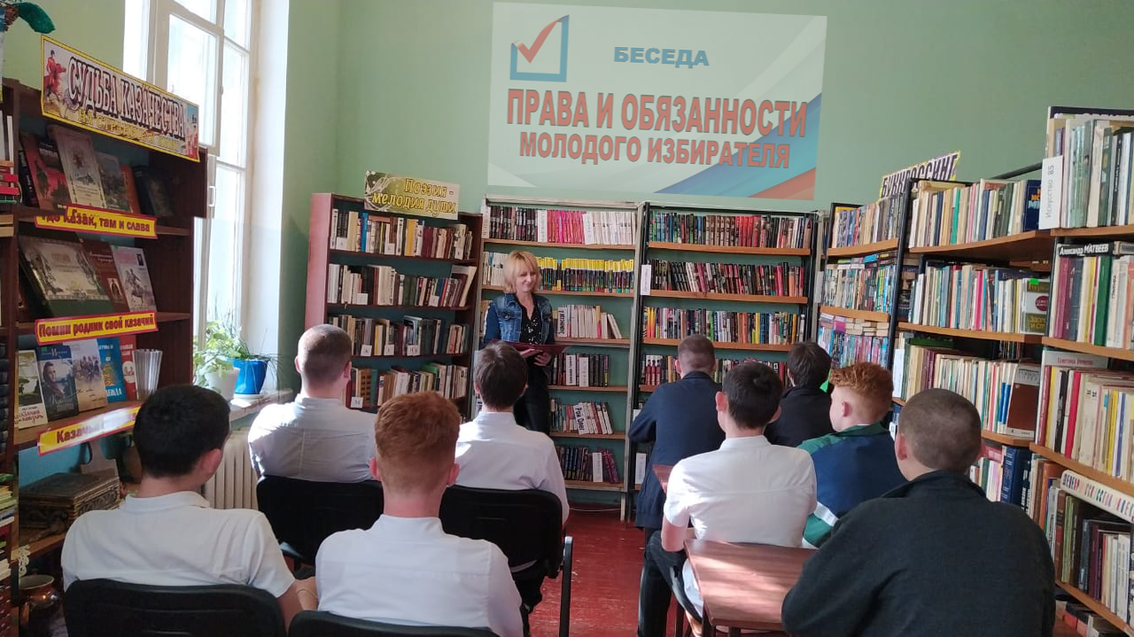 17.04.2024 г в Туркинской библиотеке, филиале №1, в рамках месячника молодого избирателя для юношеской аудитории была проведена беседа «Права и обязанности молодых избирателей». Библиотекарь рассказала учащимся об истории выборов, о правах и обязанностях гражданина Российской Федерации, о порядке голосования.