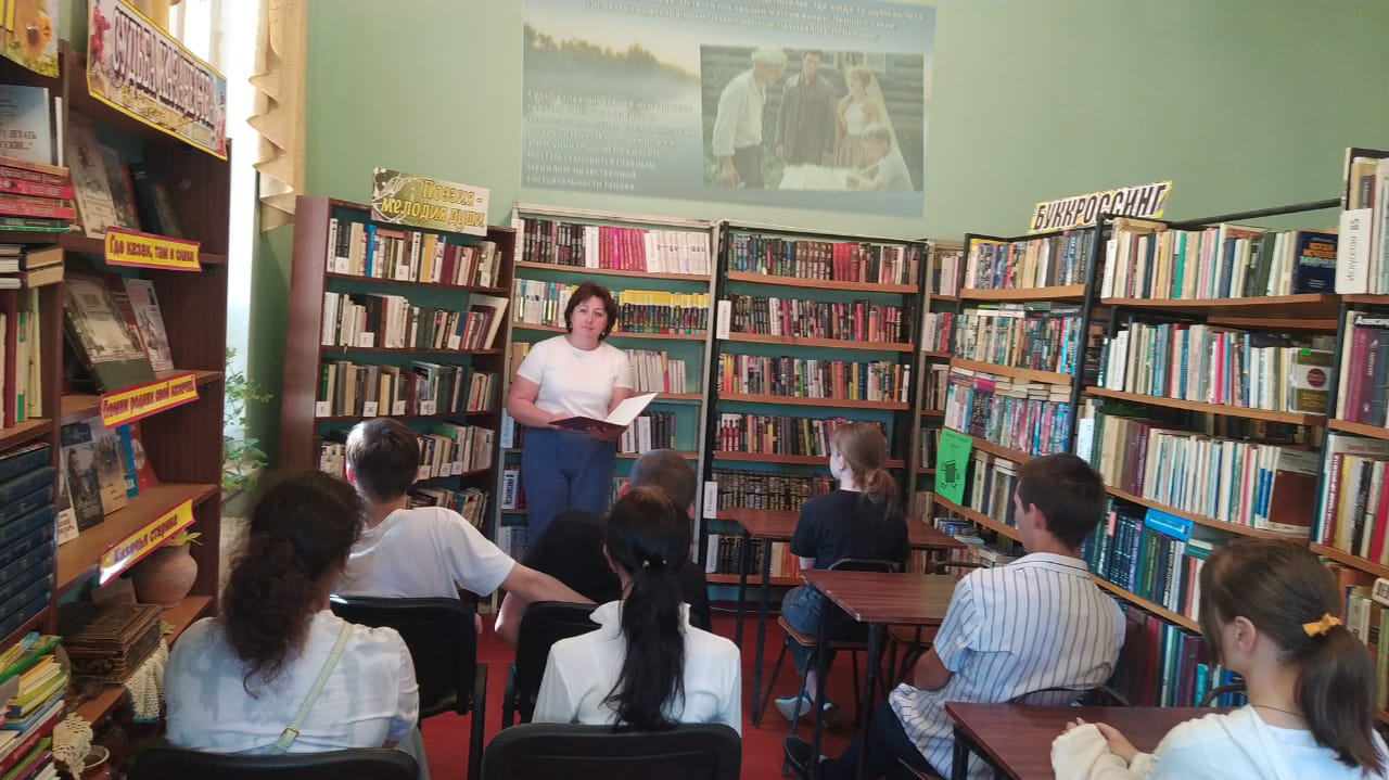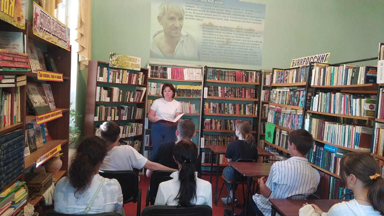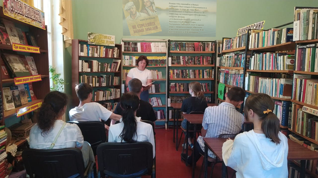 В рамках проекта «Литературные грани» и к 100-летию со дня рождения Бориса Васильева, в Туркинской библиотеке, филиал №1 молодежи представили библио-обзор «Хранитель белых лебедей». Ребята узнали о важных этапах биографии Б.Л. Васильева, а также о том, что особое место в творчестве писателя занимает роман "Не стреляйте в белых лебедей". Участники мероприятия познакомились с грустной историей о борьбе со злом, о сохранении леса и бережном отношении к природе, и о главном, как сохранить душу, как не утратить веру в людей, как научиться жить по совести. «Не стреляйте в белых лебедей» – это удивительная книга о красоте человеческой души, об умении чувствовать красоту природы, показывать её, отдавать всё лучшее, что есть в человеке, природе – матери, ничего не требуя взамен. Книга однозначно стоит того, чтобы выделить несколько часов на её прочтение.