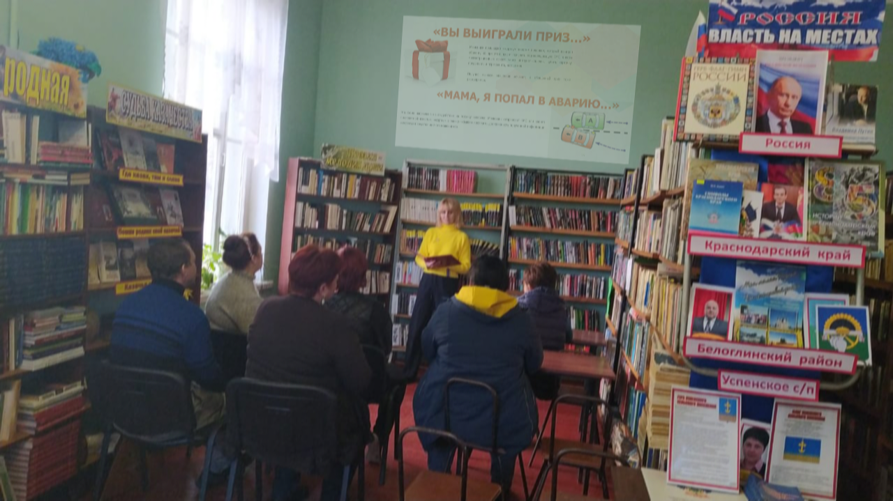 20 марта 2024 года в Туркинской библиотеке, филиале №1 для массового читателя прошел час деловой информации «Деловая информация деловым людям». Библиотекари рассказали как о наиболее распространённых, так и новых способах мошенничества. В ходе мероприятия присутствующие узнали о способах обмана людей и кражи денег с их банковских карт: от подглядывания из-за плеча во время операций с банкоматом и последующего хищения карты, от мобильного мошенничества до хакерских атак на программное обеспечение. А также присутствующие узнали, как не стать жертвой мошенников и способах защиты своих финансов.