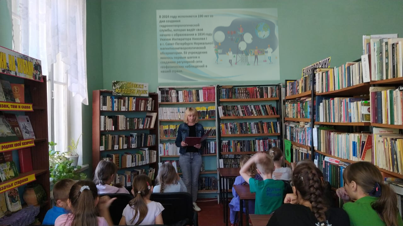 В Туркинской библиотеке, филиале №1 прошел час информации «У природы нет плохой погоды», посвященный 190-летию со дня создания гидрометеорологической службы.