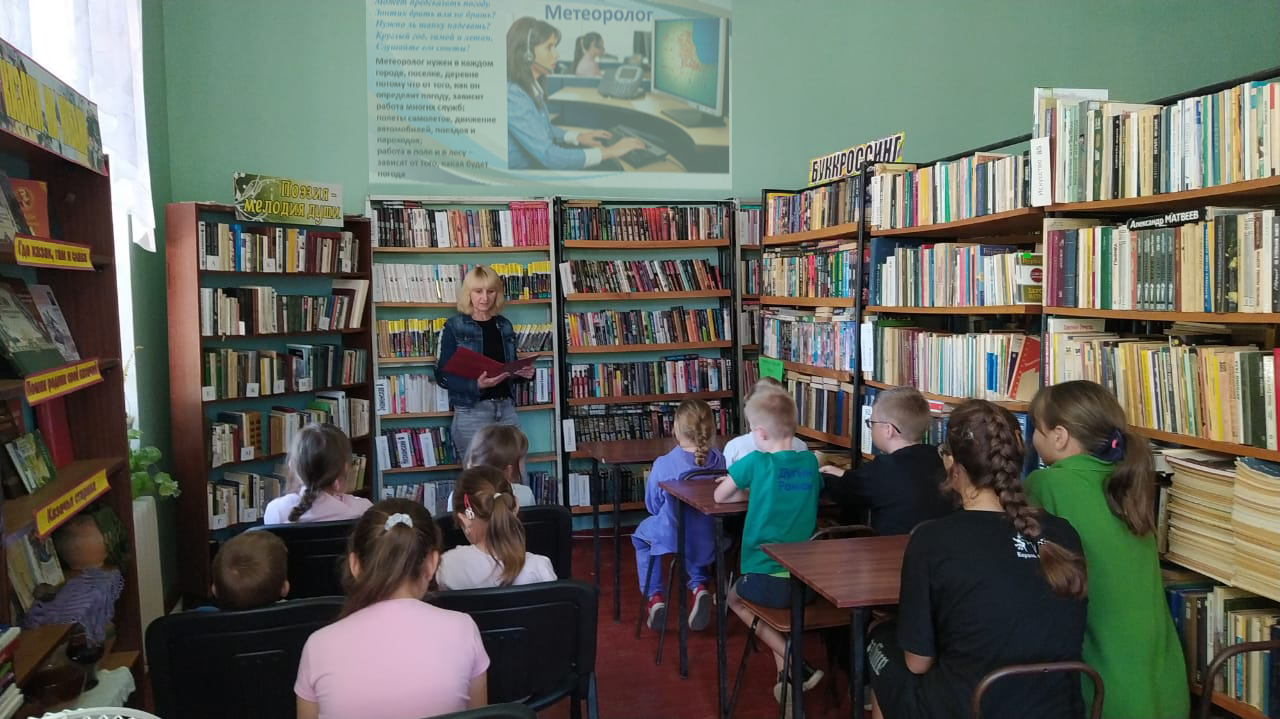 Юные читатели познакомились с краткой историей создания гидрометеорологической службы узнали о том, какой важный вклад она вносит в обеспечение безопасности и защищённости жителей страны от опасных погодных явлений. Познакомились с профессией метеоролога, дети узнали, что от того, как он определит погоду, зависит работа многих служб: полеты самолетов, движение автомобилей, поездов и пароходов, работа в поле и в лесу, отгадали загадки про погодные явления.