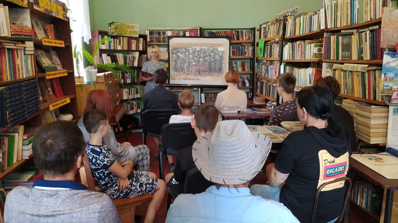 22 июля 2022 года в Туркинской библиотеке, филиале №1 для молодежи был проведен час исторических событий «Голос убитого детства»,с демонстрацией электронной версии выставки