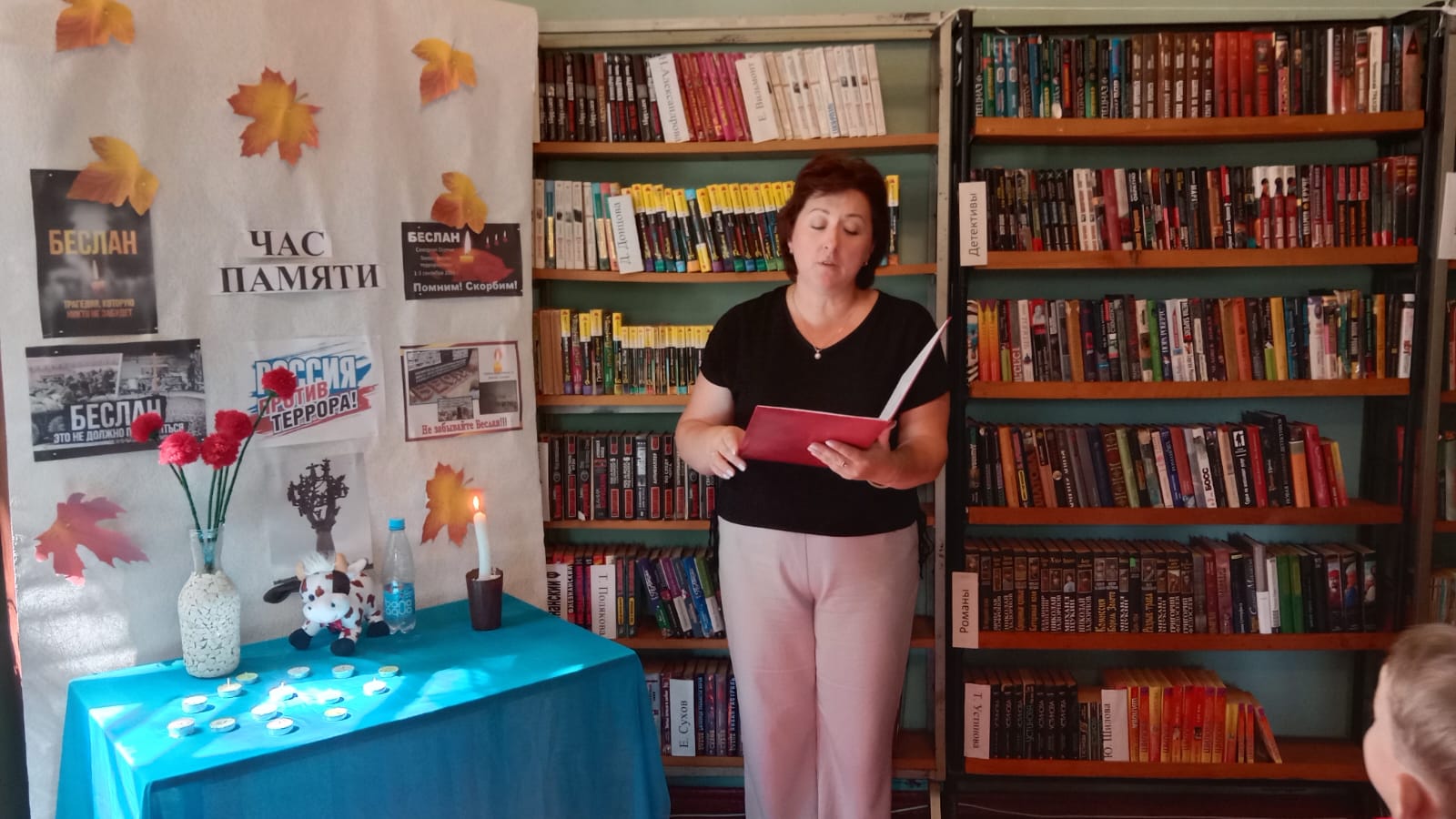 В 2024 году исполняется 20 лет с момента одной из самых крупных трагедий в современной истории нашей страны - захвата заложников в школе №1 Беслана. Боль от бесланской трагедии не утихает по сей день. Ежегодное 3 сентября в России отмечается День солидарности в борьбе с терроризмом. 2 сентября в Туркинской библиотеке, филиал №1 прошёл час памяти "Плачут дождём небеса". Мероприятие было посвящено маленьким жителям Беслана чьи имена навсегда останутся в памяти человечества, их учителям и родителям, которые до последней минуты делили с детьми тяжесть выпавших на их долю испытаний и всем тем, кто погиб в пекле пылающего ада, тем, кто выжил в те страшные сентябрьские дни. К этой дате в библиотеке был оформлен информационный стенд.