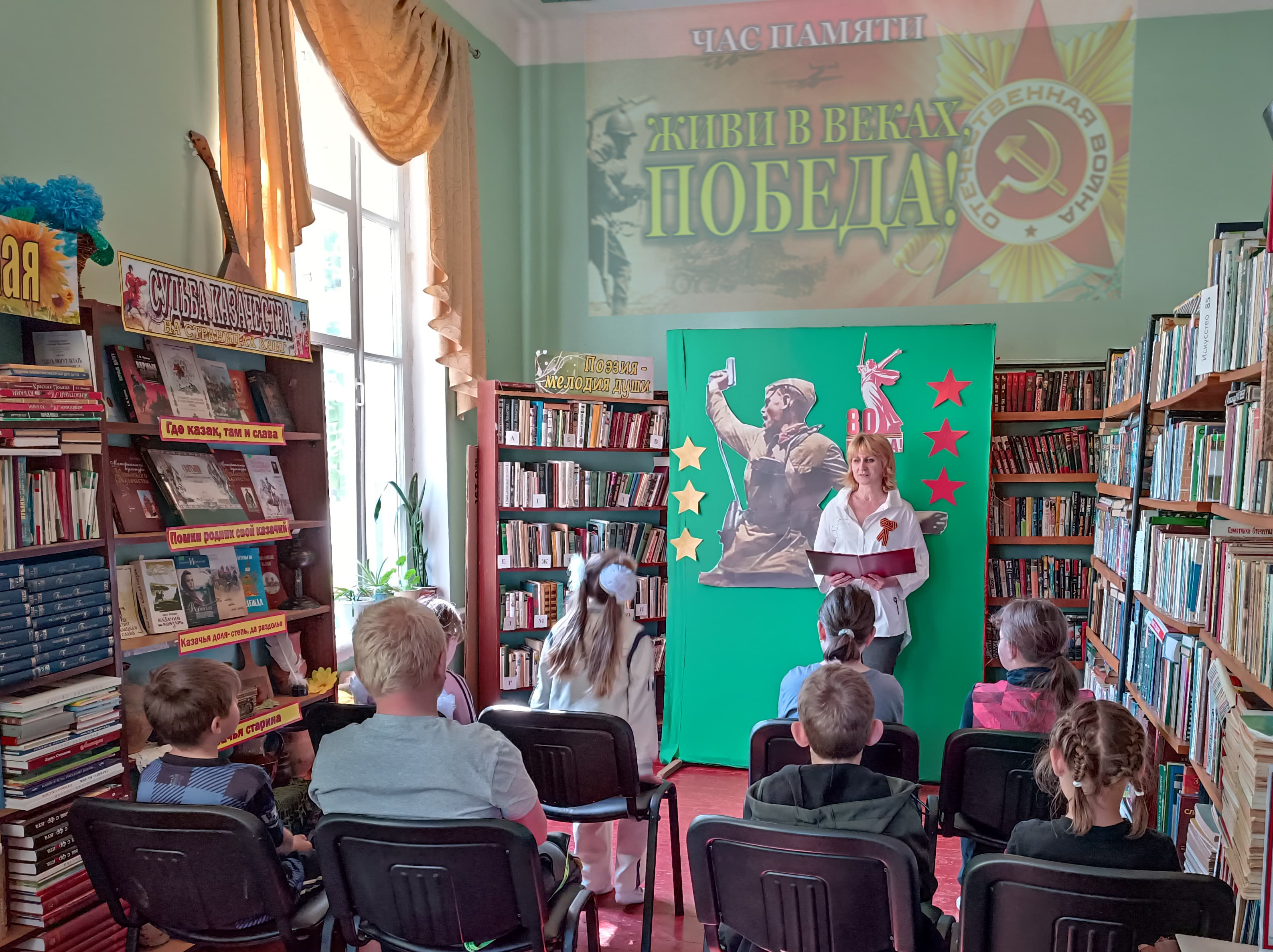 В преддверии празднования 80-летия Великой Победы 6 мая в Туркинской библиотеке, филиал №1 прошел час памяти «Живи в веках, Победа».