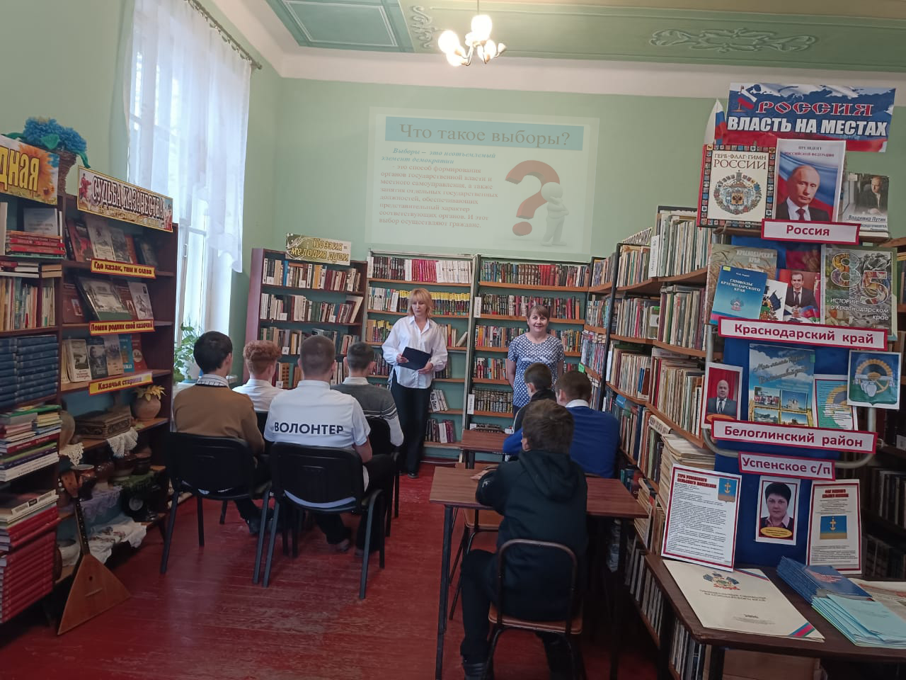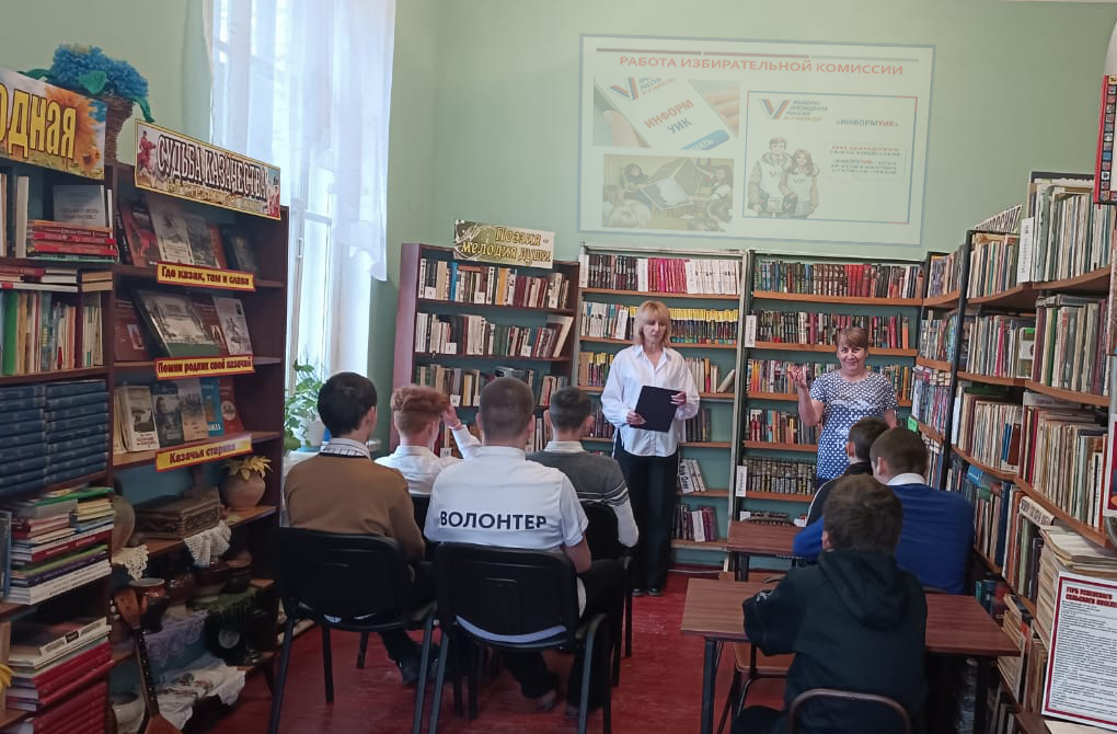Ежегодно в России проводится важное масштабное мероприятие по повышению правовой культуры юношества — День молодого избирателя. В преддверие данного события в Туркинской библиотеке, филиале №1 прошел информационный час «Мой гражданский долг». Основная цель мероприятия: сформировать у молодых людей гражданской ответственности, повышения уровня информированности о выборах, их правовой и электоральной культуры. Библиотекарь рассказала учащимся о выборах как о важном элементе общественно–политической жизни государства. Старшеклассники узнали о принципах избирательного права, различных вопросах реализации избирательных прав граждан, порядке проведения голосования. На мероприятие была приглашена заместитель председателя участковой избирательной комиссии Иванча Н.В., которая рассказала ребятам для чего создаются избирательные комиссии, кого называют участниками избирательного процесса, с какого возраста возникает избирательное право, какие документы нужны для участия в выборах. В конце мероприятия она призвала присутствующих при достижении 18-летнего возраста активно участвовать в выборах, выполнить свой гражданский долг, ведь от этого зависит их будущее и будущее всей страны.