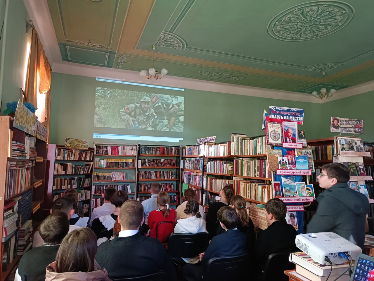 6.12.2024г в Туркинской библиотеке, филиал №1 в рамках Молодежного патриотического проекта «ПОТОМКИ ПОБЕДИТЕЛЕЙ» состоялся кинопоказ «Героям Специальной военной операции посвящается…».