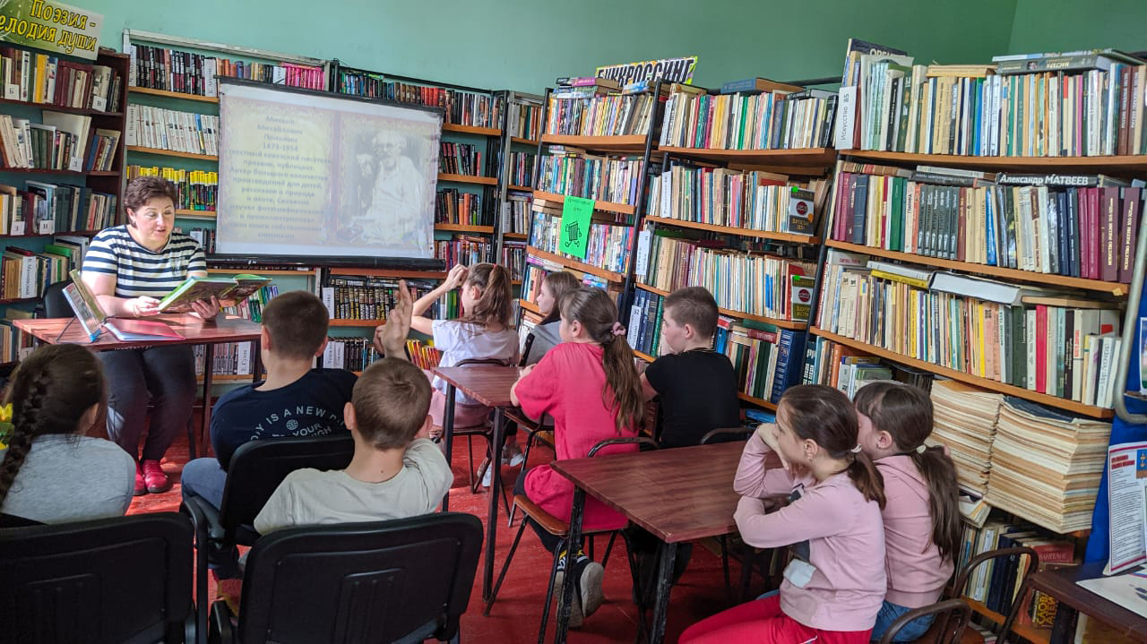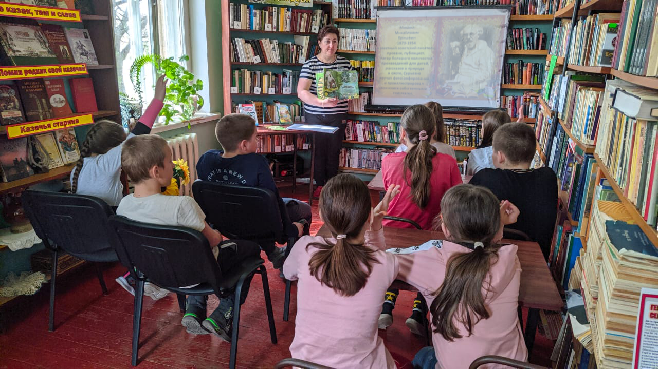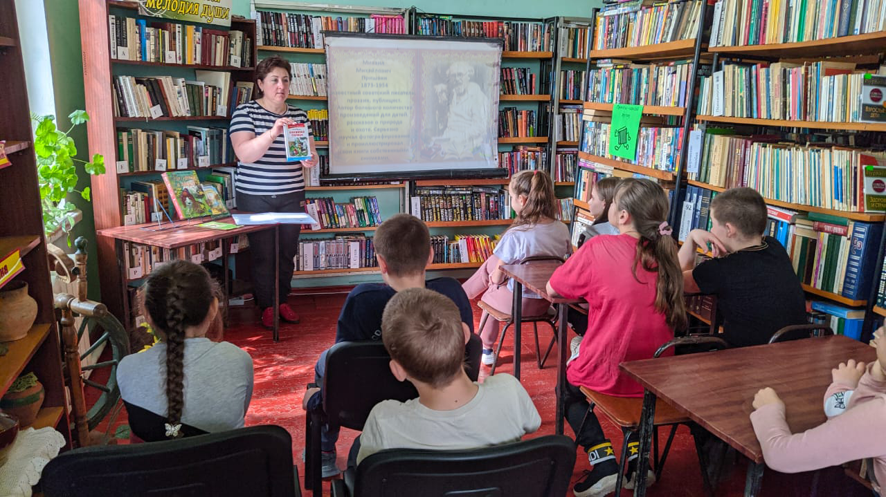 В ходе литературного путешествия ребята познакомились с интересными фактами из биографии писателя, с его творчеством и книгами. Библиотекарь прочитала некоторые рассказы Пришвина вслух, затем ребята ответили на вопросы литературной викторины, разгадали загадки. Ответили, что рассказы Михаила Пришвина учат быть добрым, великодушным, воспитывают любовь к природе, бережное отношение к птицам. Ребята не только слушали и обсуждали, но и пообещали, что будут беречь, охранять и любить природу, также, как и талантливый натуралист М.М. Пришвин.