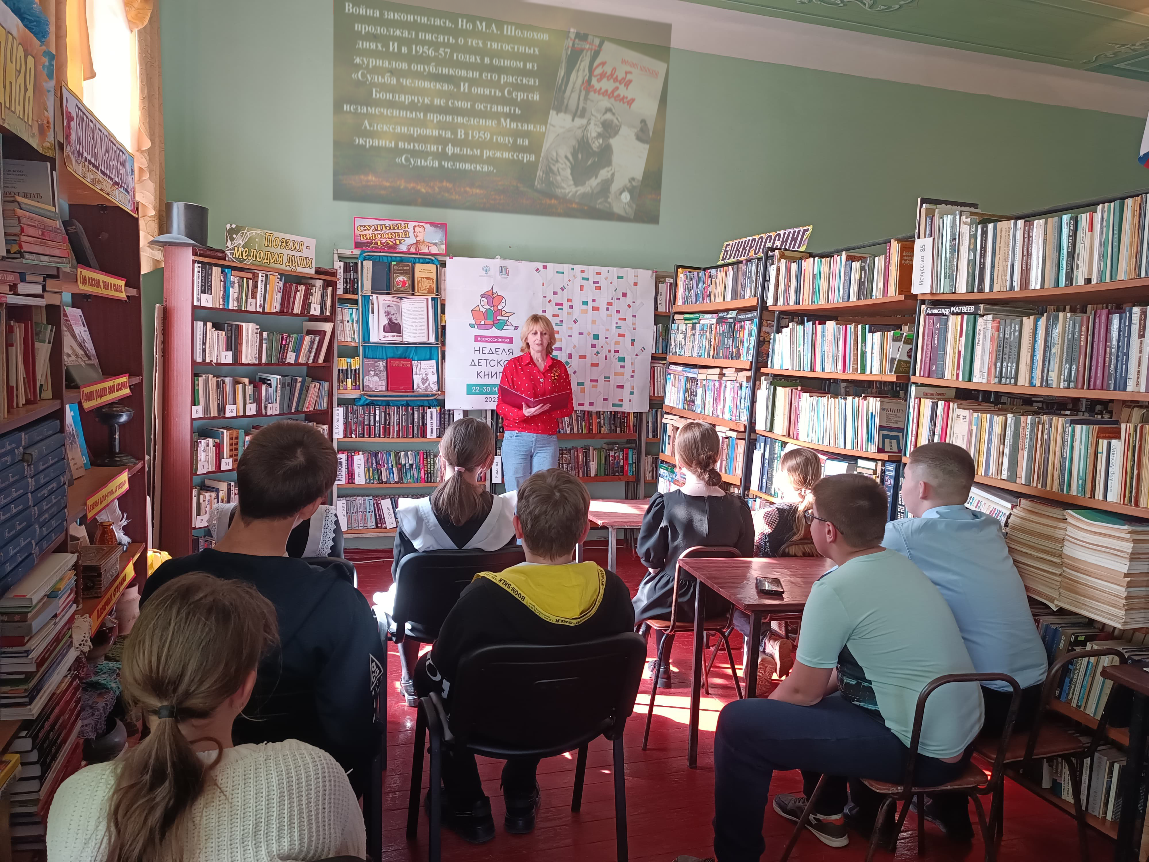 В ходе мероприятия пользователи узнали об интересных страницах жизни писателя, что Шолохов с первых дней Великой Отечественной войны посвятил свое творчество служению народу, вступившему в смертельную схватку со злейшим врагом человечества — германским фашизмом. Что в эти военные годы им были созданы романы «Они сражались за Родину», «Судьба человека». Узнали, о том, что его книги М.А.Шолохова переведены на множество языков мира.