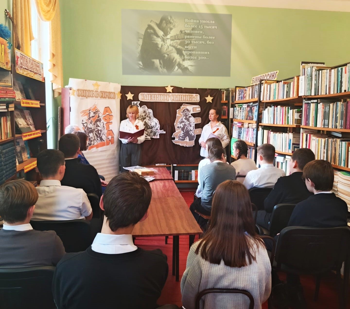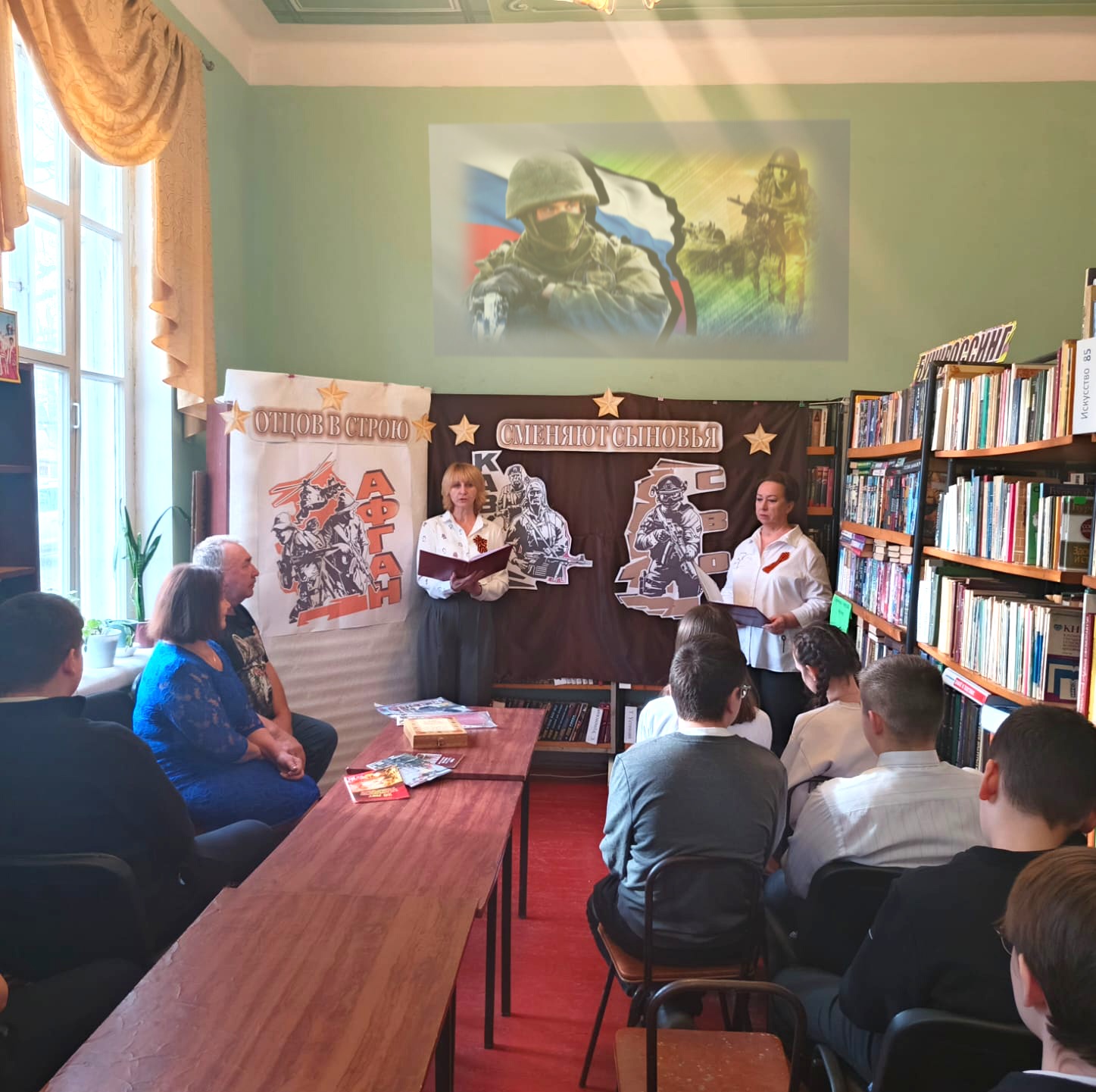 В рамках Года защитника Отечества и Года мира и единства в борьбе с нацизмом в Туркинской библиотеке, филиал №1 прошел патриотический час «Отцов в строю сменяют сыновья», организованный совместно с работниками СДК.