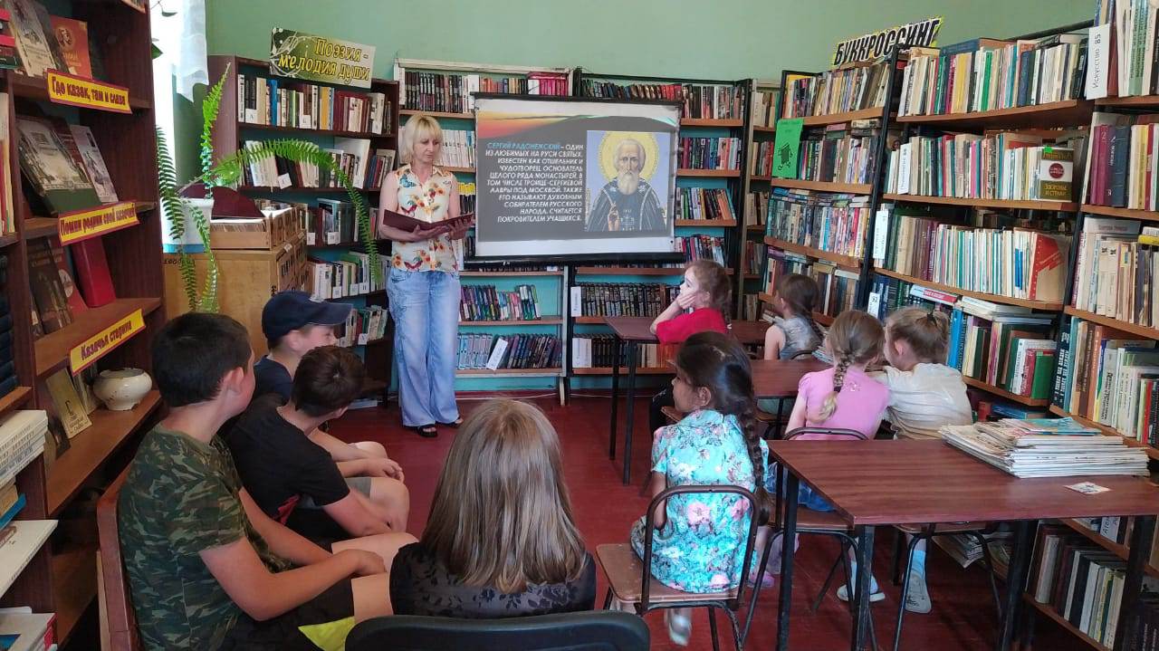 12 июля 2022г. в Туркинской библиотеке, филиале№1 для детей был проведен урок добра «Дорогою добра», посвященный 708-летию со дня рождения Сергия Радонежского.В ходе мероприятия дети узнали о жизненном и духовном пути святого игумена земли Русской - Сергия Радонежского .
