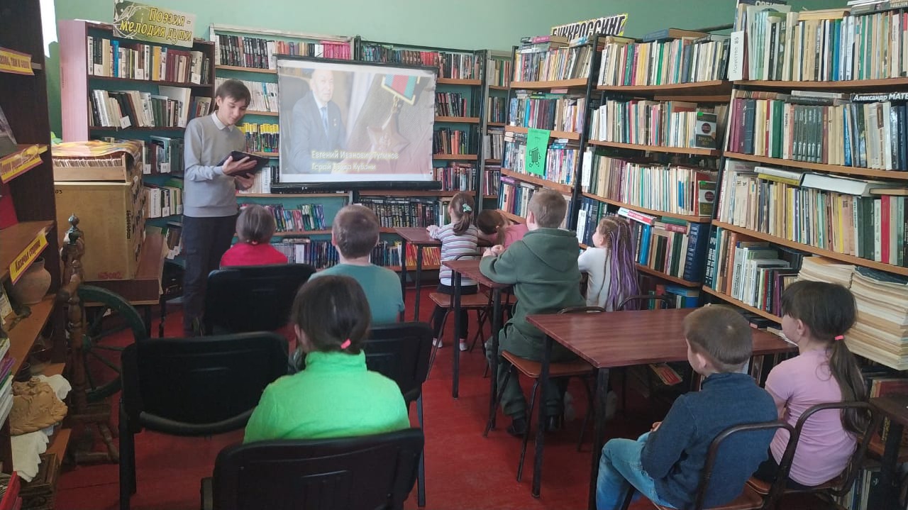 Есть народная пословица: «Кто любит труд – того и люди чтут». На Кубани человек труда всегда был в почете, всегда уважительно относились к мастерам своего дела, людям трудолюбивым и работящим.В Белоглинском районе Тулинова Е.И. знают все.. Евгений Иванович — человек-легенда аграрной отрасли Кубани, России. Заслуженный работник сельского хозяйства РФ, Кубани, Почетный работник АПК России, Герой труда Кубани. 21 марта, в рамках марафона «Школа больших перспектив» волонтёром Туринской библиотеки, филиал №1 Васькиным Александром под руководством библиотекаря-куратора был подготовлен и проведен вечер-портрет «Человек труда», посвященный Герою Труда Кубани Тулинову Е.И. Ребята с большим интересом слушали рассказ о жизни и трудовой деятельности нашего земляка, узнали, каких высот достиг Е.И.Тулинов в труде, о его заслугах перед Отечеством. В ходе мероприятия на примере судьбы и трудовых успехов нашего земляка, который всю свою жизнь верен родине, земле, людям, профессии, постарались расширить знания детей о значении труда в жизни человека и сформировать позитивное отношение к труду и уважение к людям труда.